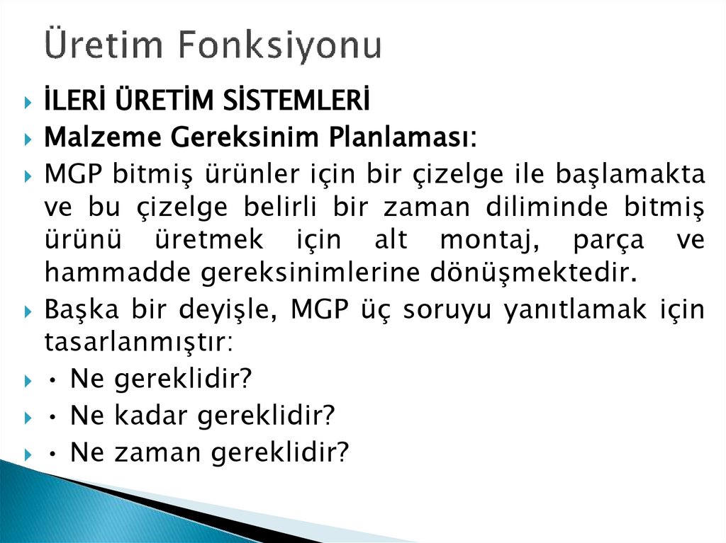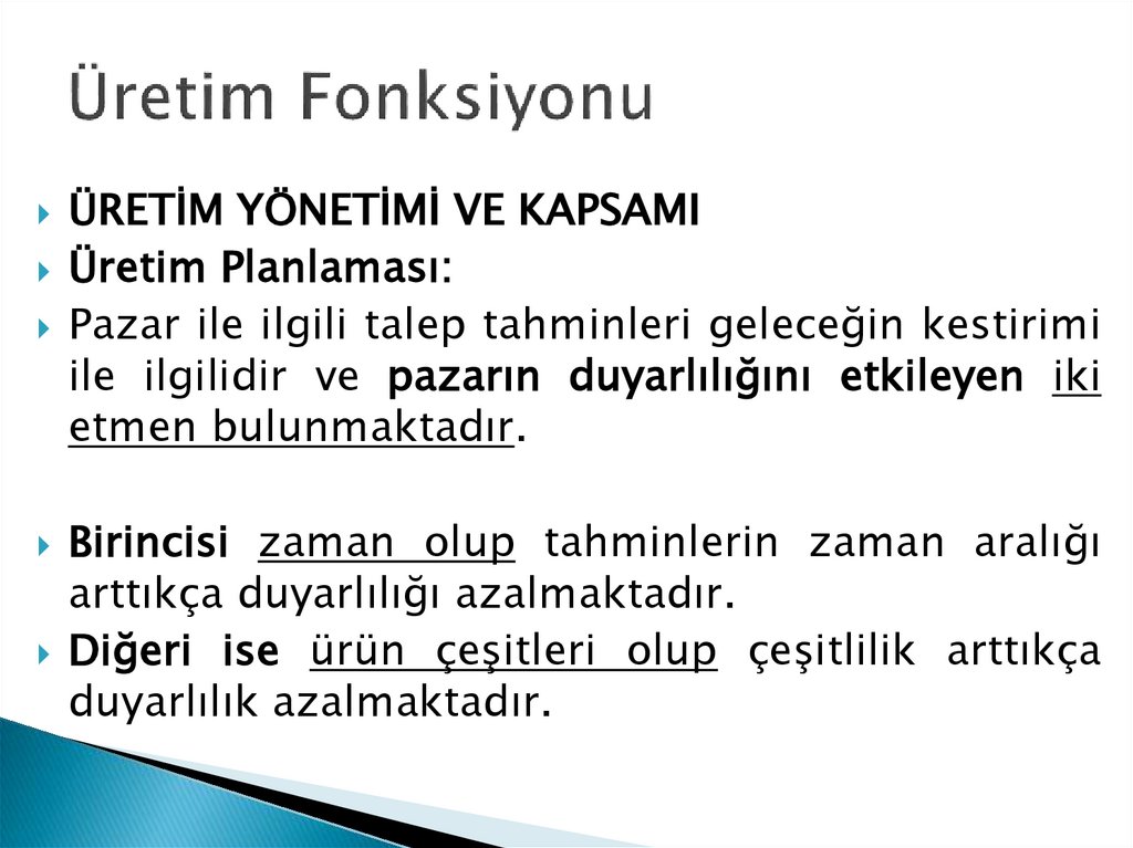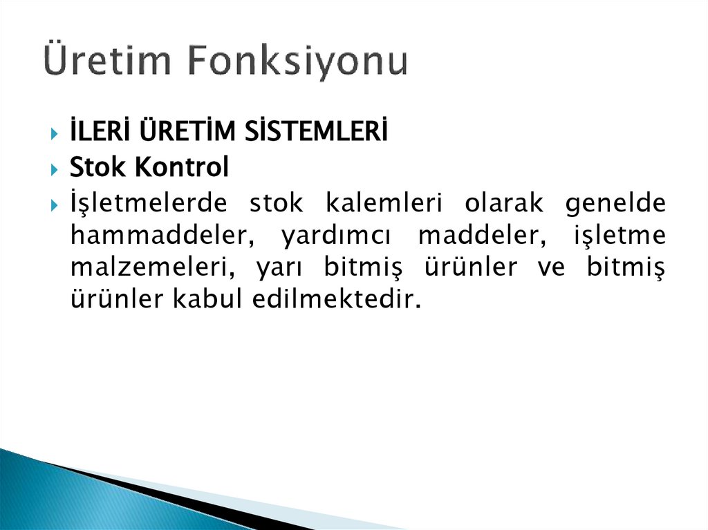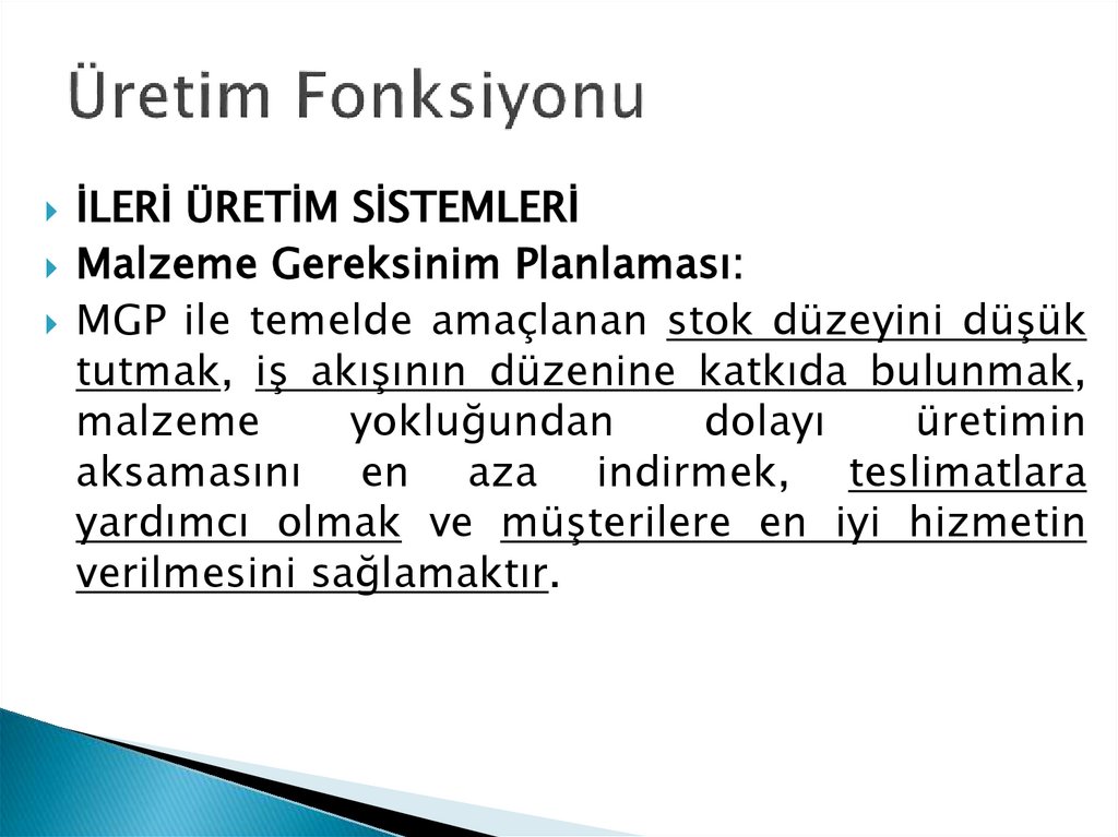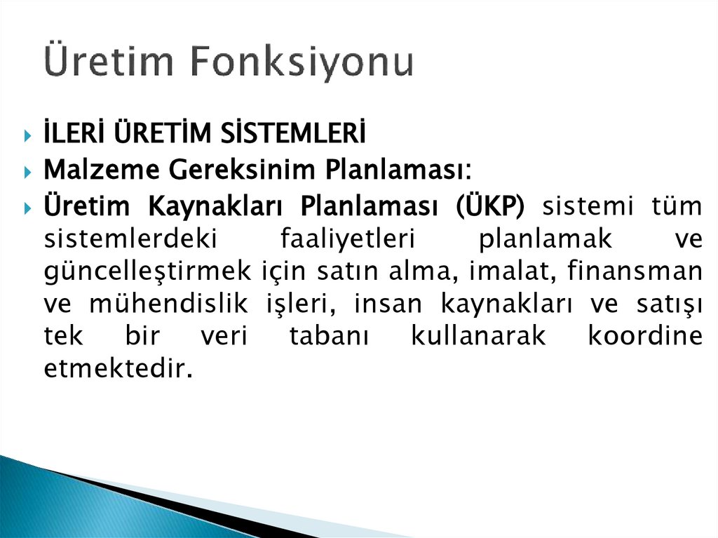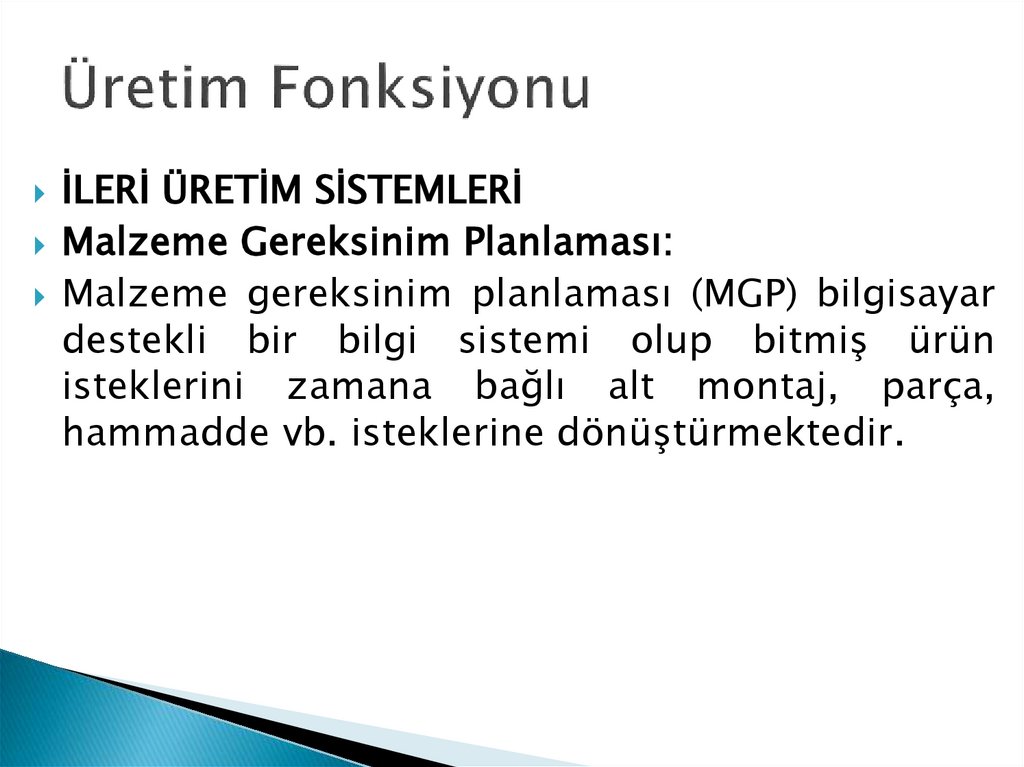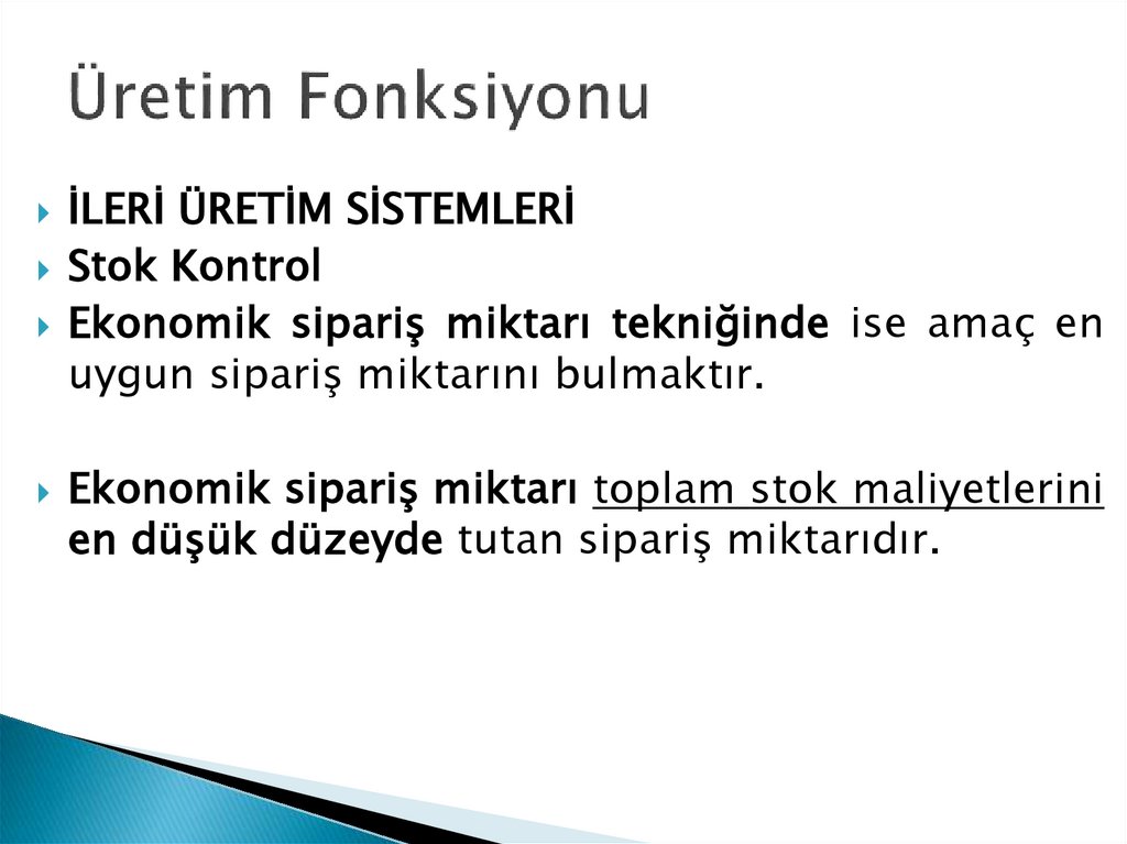 Üretim Sistemleri8. Üretim Fonksiyonu