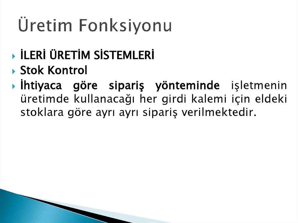 üretimini gerçekleştiren bölümüdür. Üretilenler, bazı işletmelerde