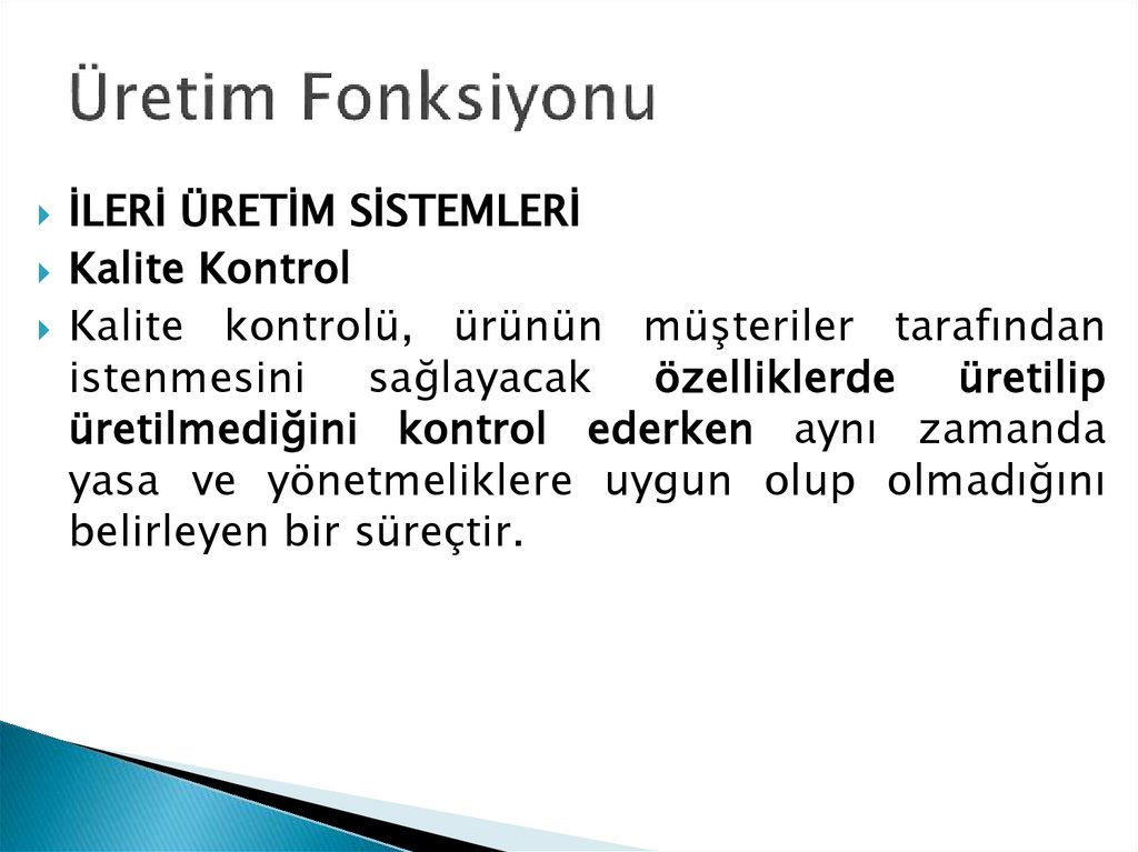 Üretim Sistemleri2. Etkinlik: Üretim sisteminin amaçlarını gerçekleştirme