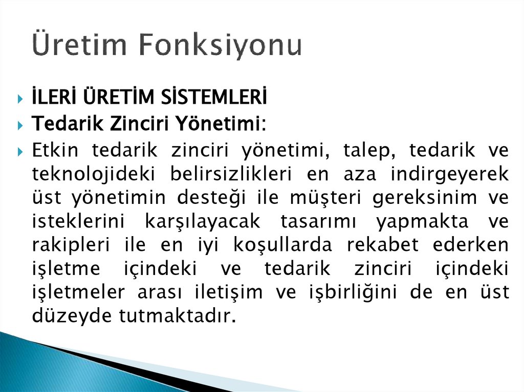 İLERİ ÜRETİM SİSTEMLERİTedarik Zinciri Yönetimi: