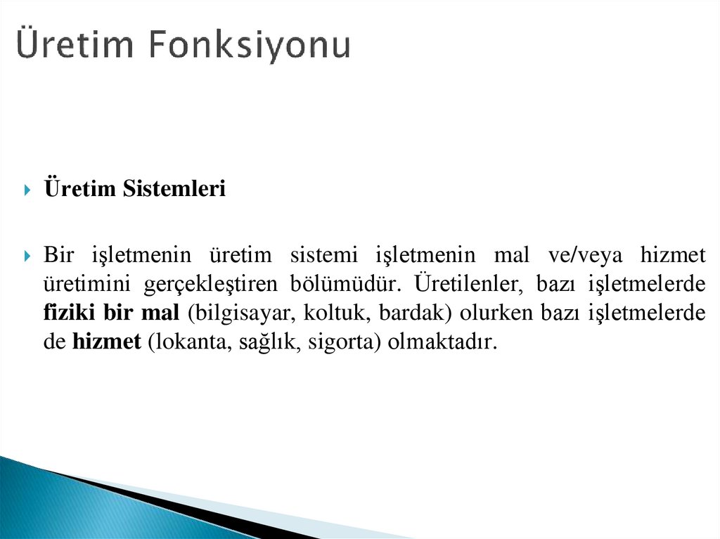 ÜRETİM KAVRAMI VE ÜRETİM SİSTEMLERİİşletmelerin temel amacı topluma mal ve hizmet sunarak