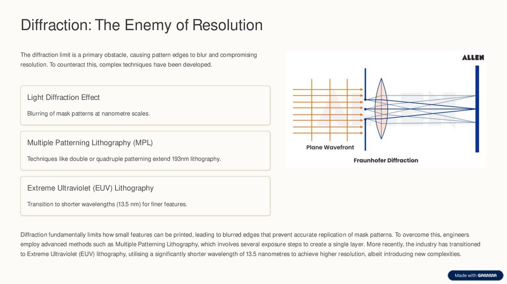 Diffraction: The Enemy of ResolutionThe diffraction limit is a primary obstacle, causing pattern edges to blur and compromising