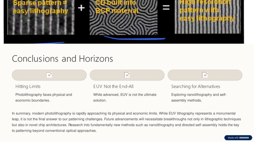 In summary, modern photolithography is rapidly approaching its physical and economic limits. While EUV lithography represents a monumental