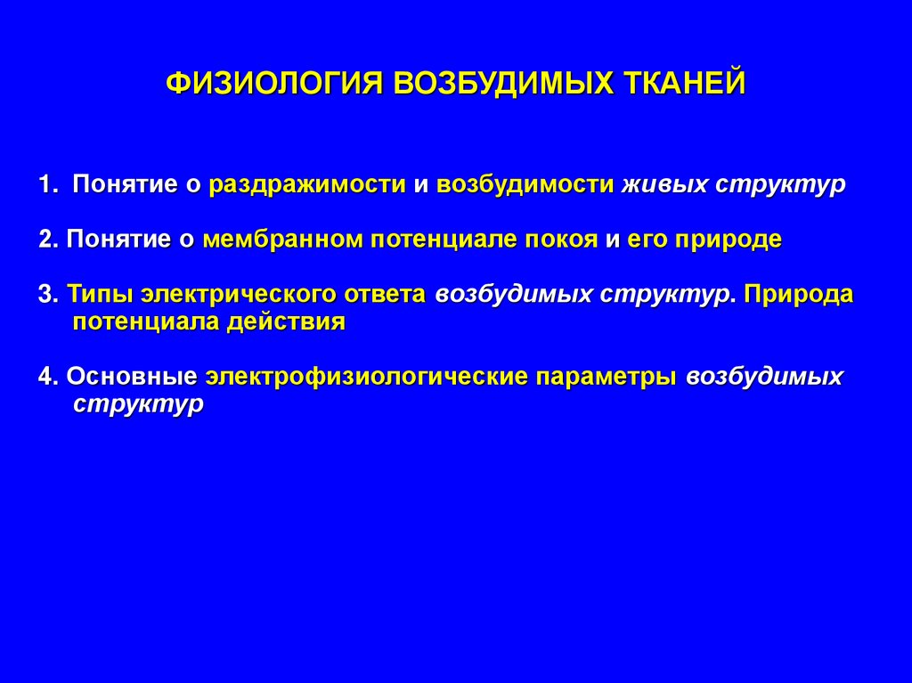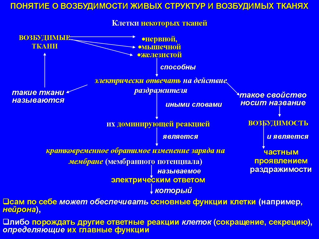 ПОНЯТИЕ О ВОЗБУДИМОСТИ ЖИВЫХ СТРУКТУР И ВОЗБУДИМЫХ ТКАНЯХКлетки некоторых тканей