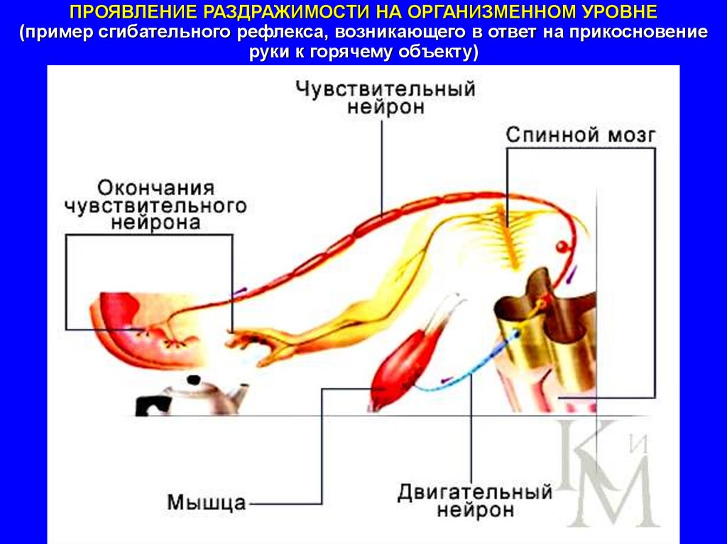 ПРОЯВЛЕНИЕ РАЗДРАЖИМОСТИ НА ОРГАНИЗМЕННОМ УРОВНЕ(пример сгибательного рефлекса, возникающего в ответ на прикосновение