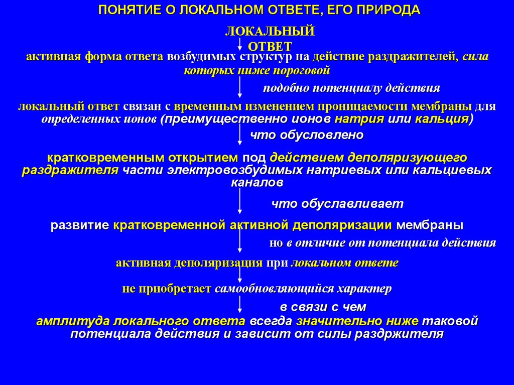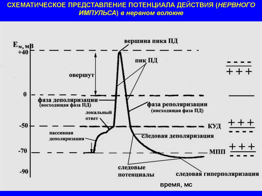 СХЕМА ПОТЕНЦИАЛА ДЕЙСТВИЯ И ЛОКАЛЬНОГО ОТВЕТА ВОЗБУДИМОЙСТРУКТУРЫ