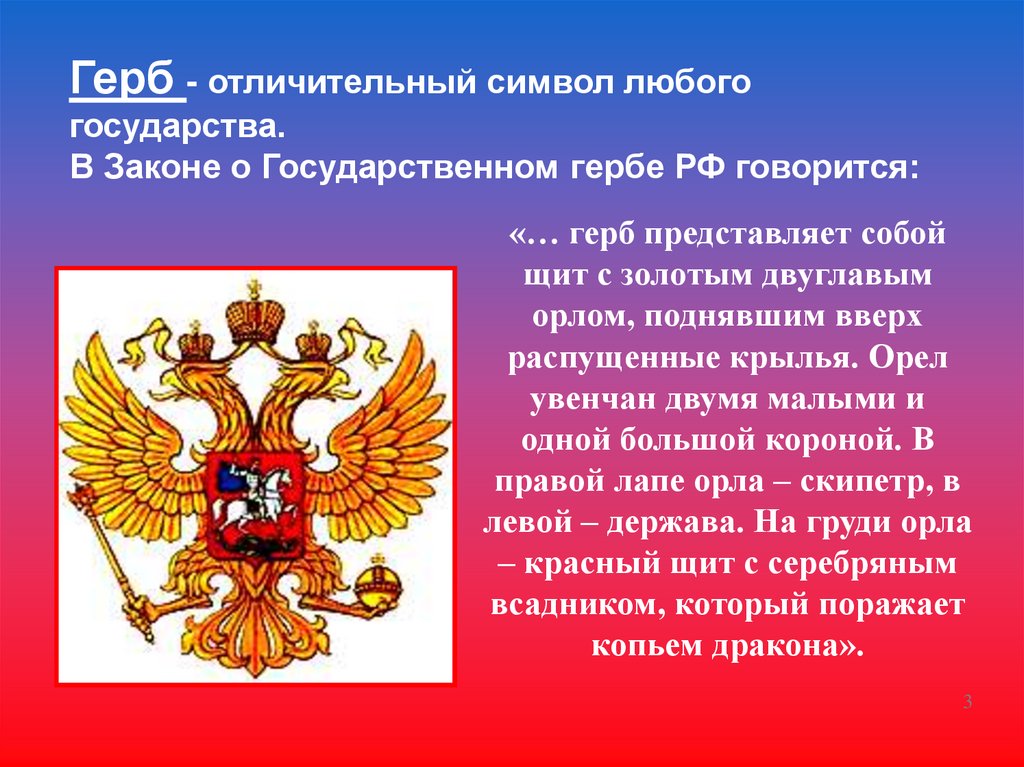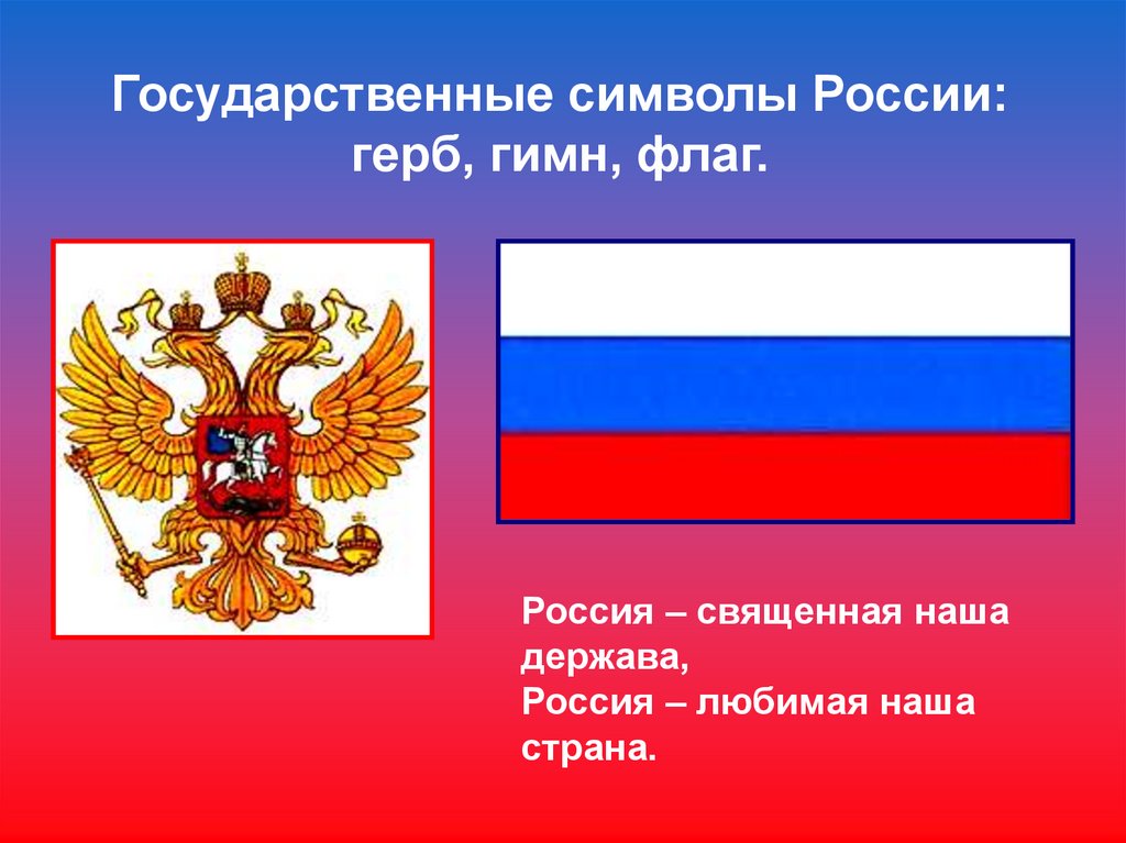 Государственные символы России:герб, гимн, флаг.