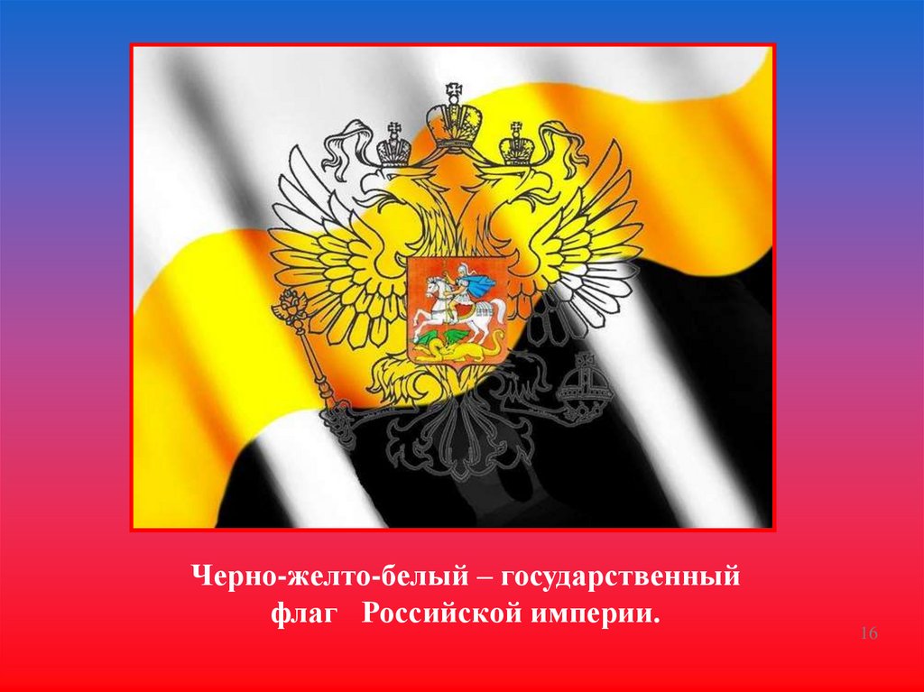 Черно-желто-белый – государственныйфлаг Российской империи.
