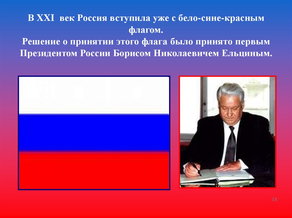 В XXI век Россия вступила уже с бело-сине-краснымфлагом.