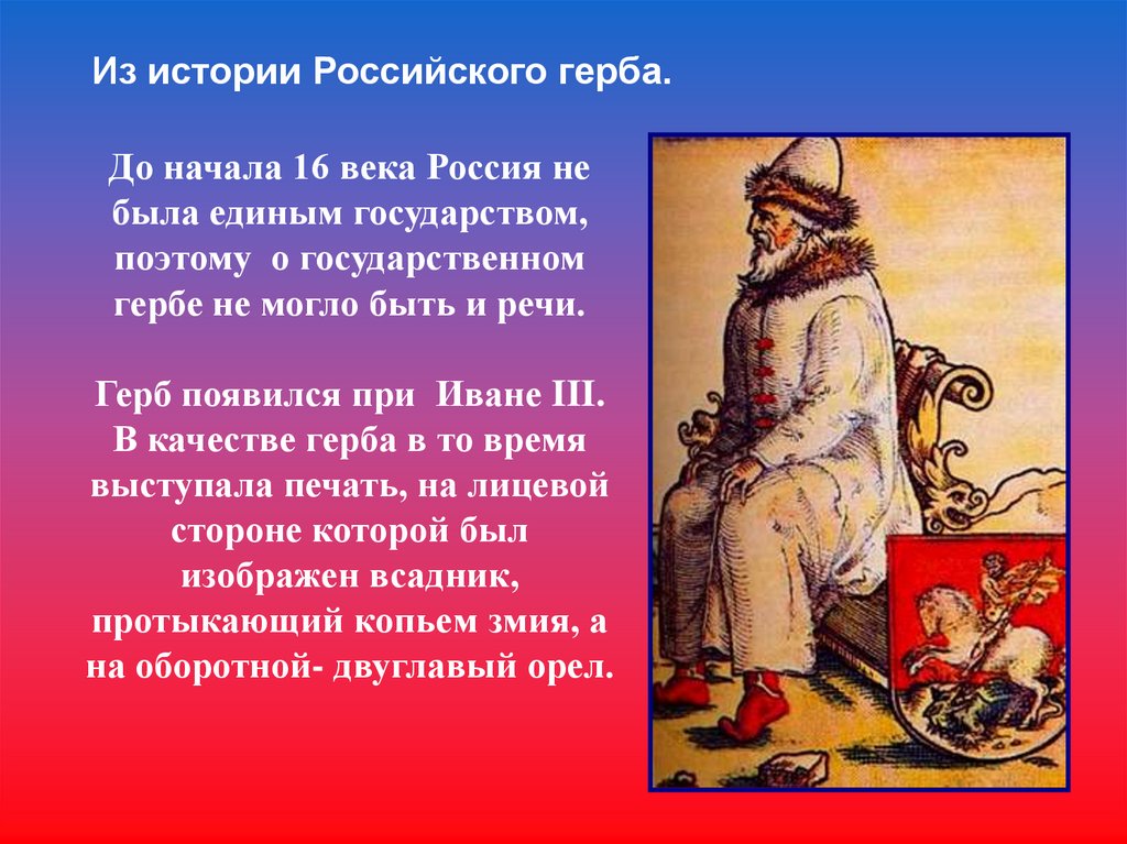 Из истории Российского герба.До начала 16 века Россия не
