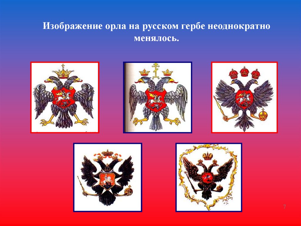 Изображение орла на русском гербе неоднократноменялось.