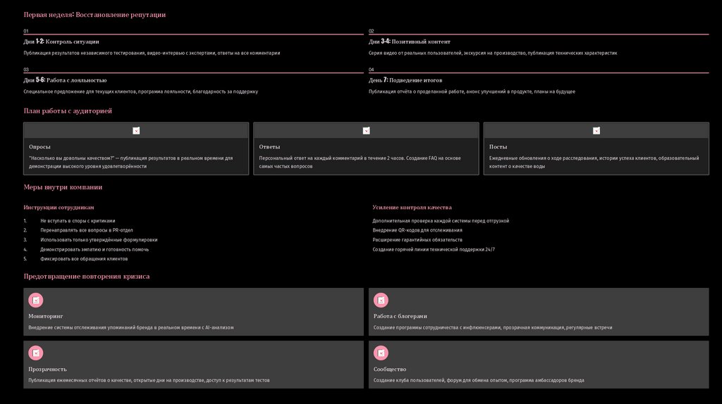 Публикация ежемесячных отчётов о качестве, открытые дни на производстве, доступ к результатам тестов