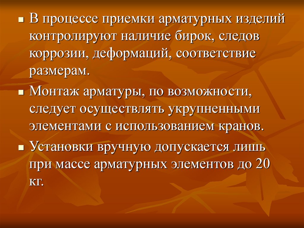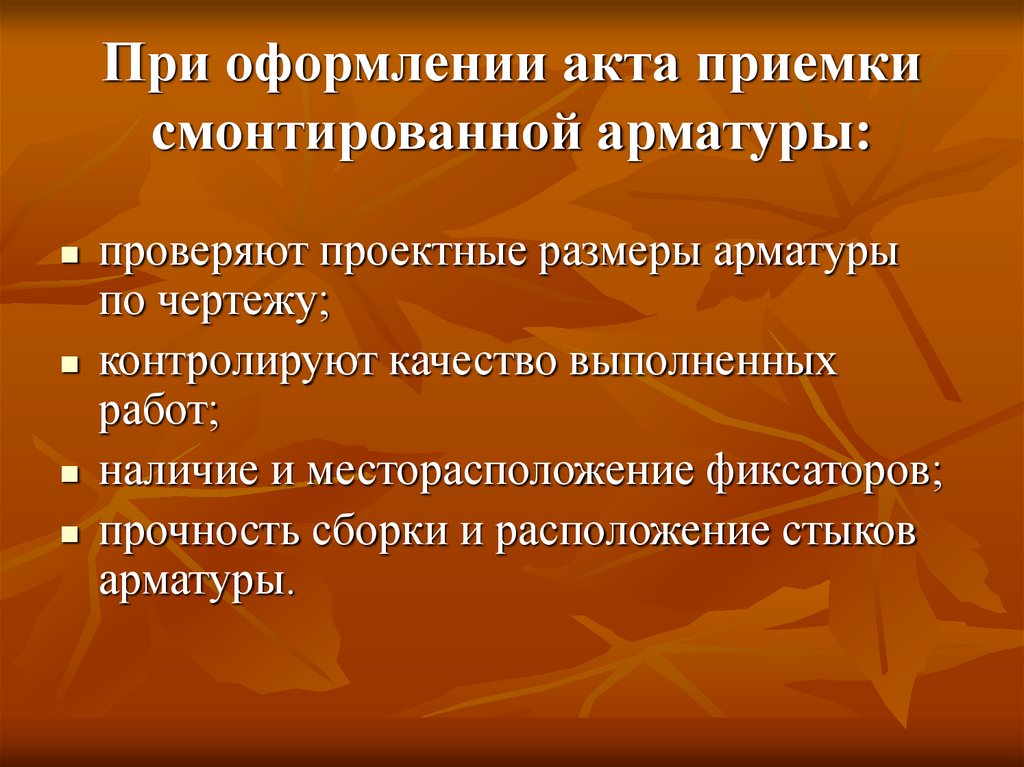 В процессе приемки арматурных изделийконтролируют наличие бирок, следов
