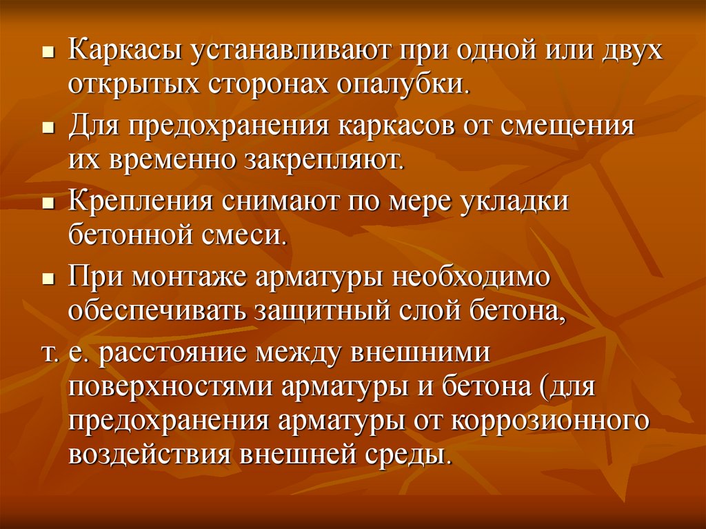 Каркасы устанавливают при одной или двухоткрытых сторонах опалубки.
