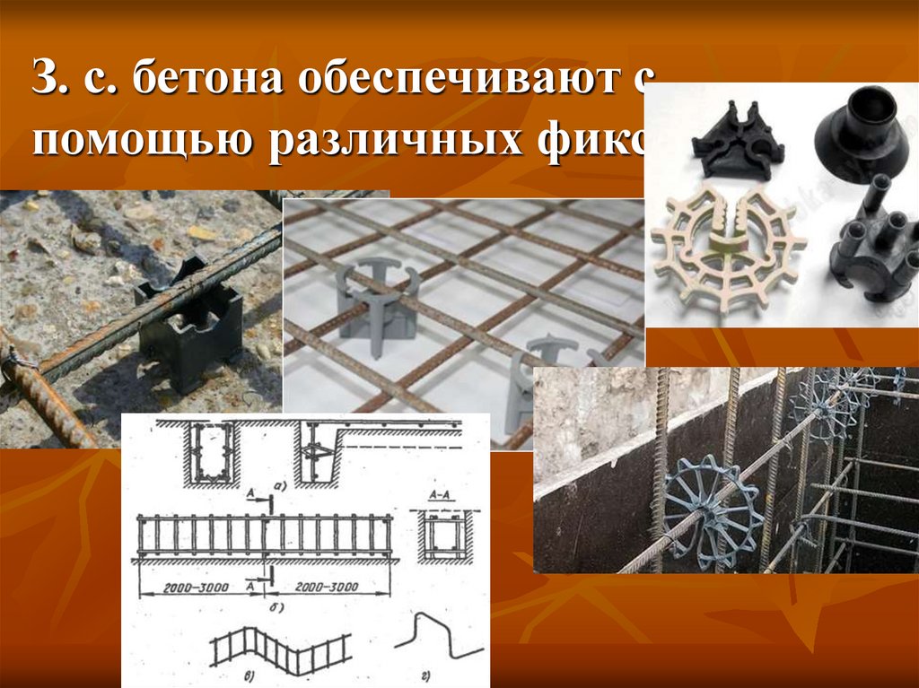 17. З. с. бетона обеспечивают с помощью различных фиксаторов: