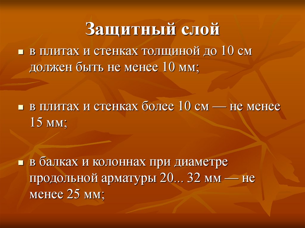 в плитах и стенках толщиной до 10 смдолжен быть не менее 10 мм;