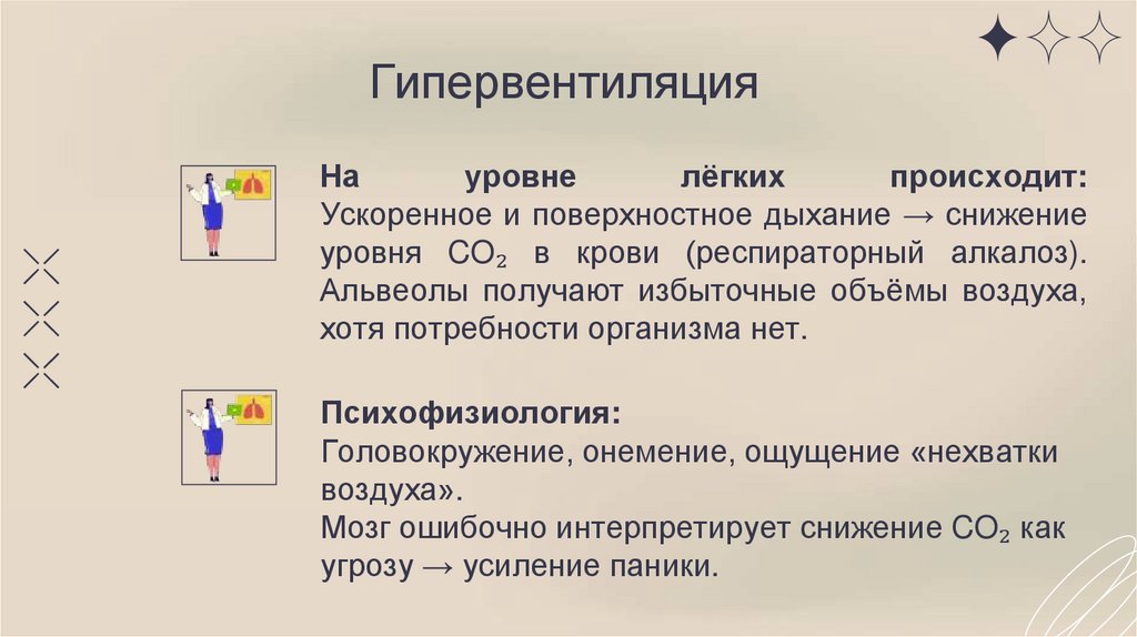 2. Объясните, почему при панике возникает субъективное чувство нехватки воздуха при нормальном