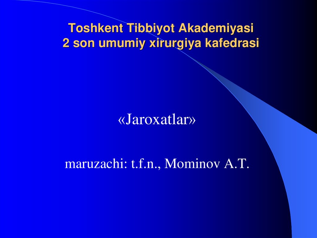 «Jaroxatlar»maruzachi: t.f.n., Mominov A.T.