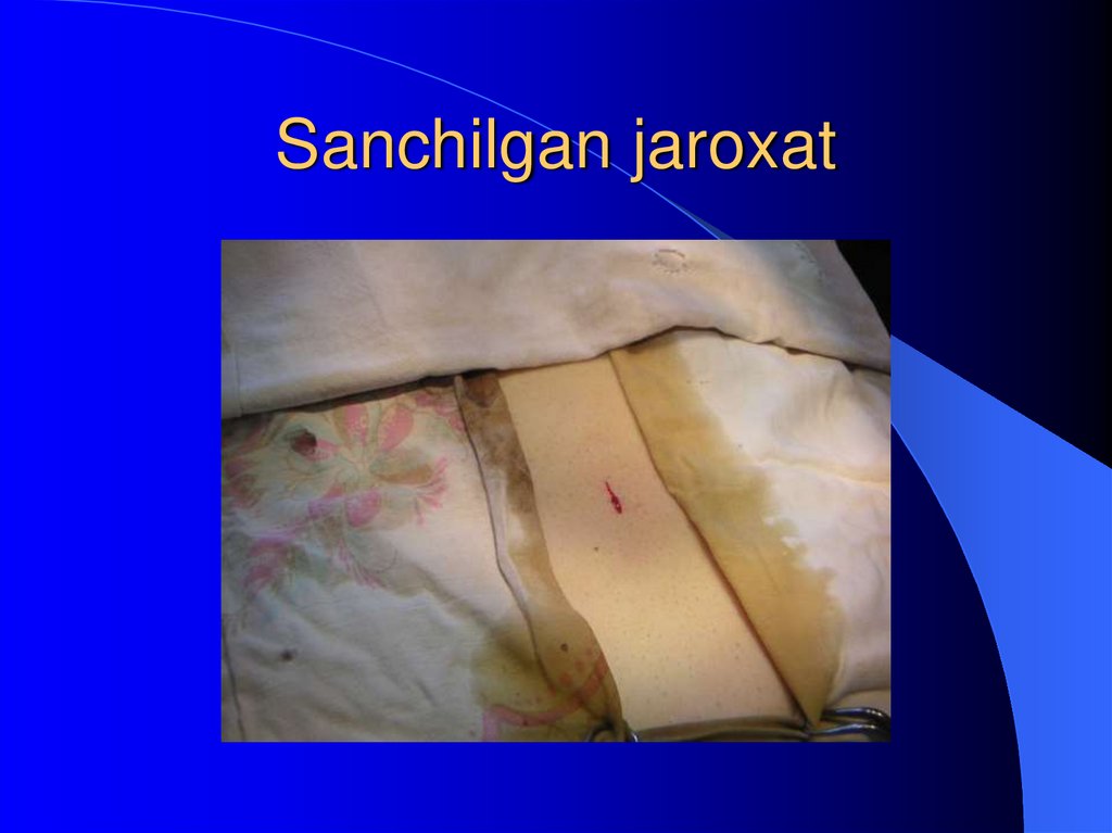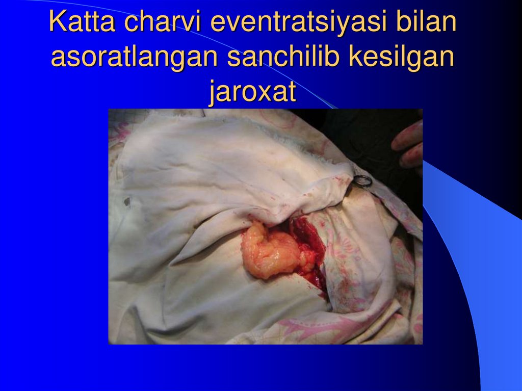 12. Katta charvi eventratsiyasi bilan asoratlangan sanchilib kesilgan jaroxat