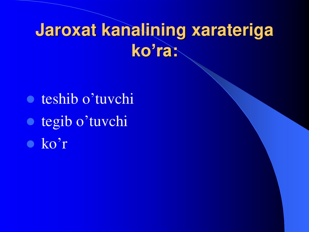 23. Jaroxat kanalining xarateriga ko’ra: