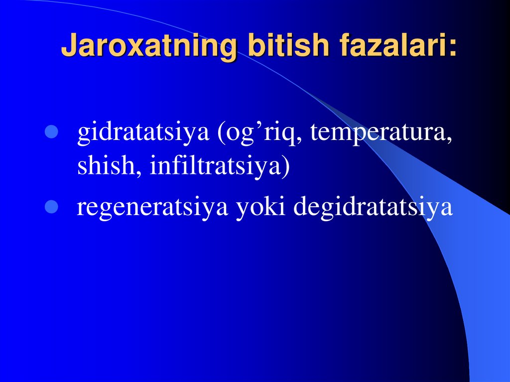 gidratatsiya (og’riq, temperatura,shish, infiltratsiya)