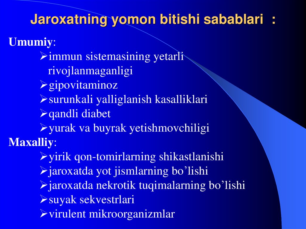 25. Jaroxatning yomon bitishi sabablari :