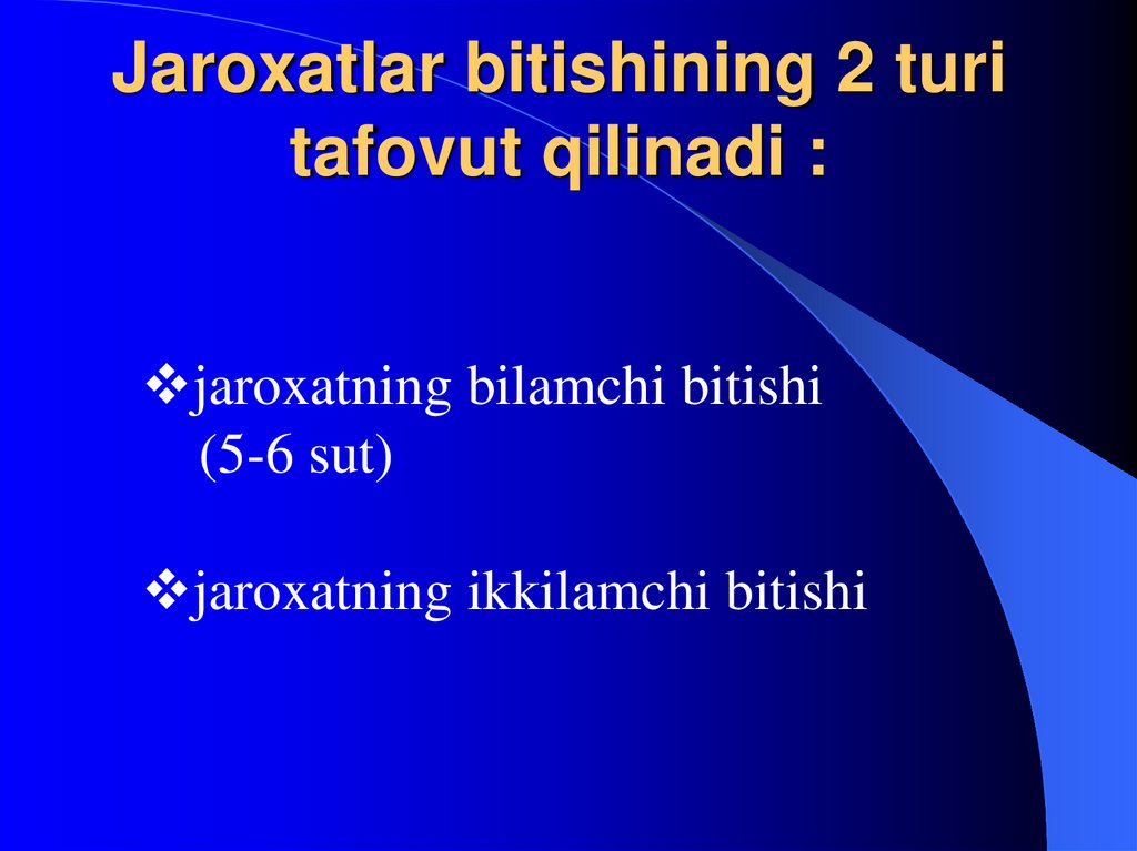 26. Jaroxatlar bitishining 2 turi tafovut qilinadi :