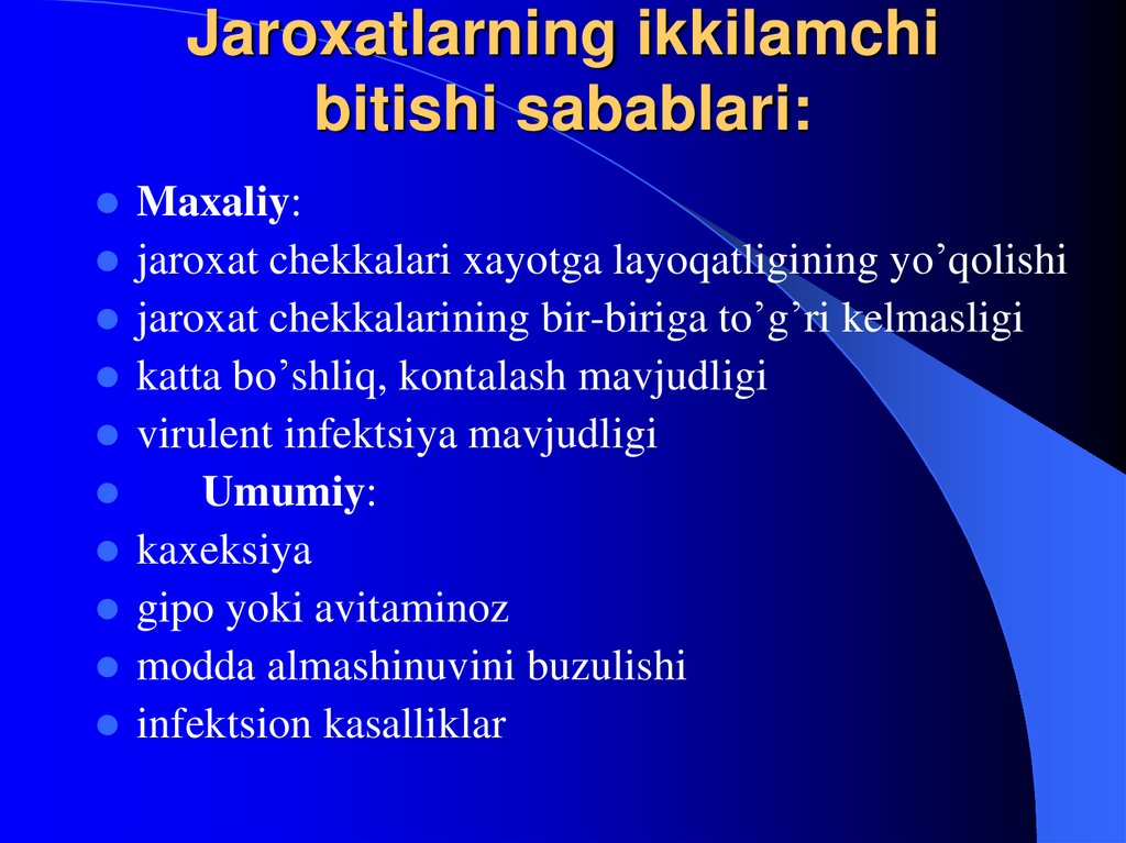 29. Jaroxatlarning ikkilamchi bitishi sabablari: