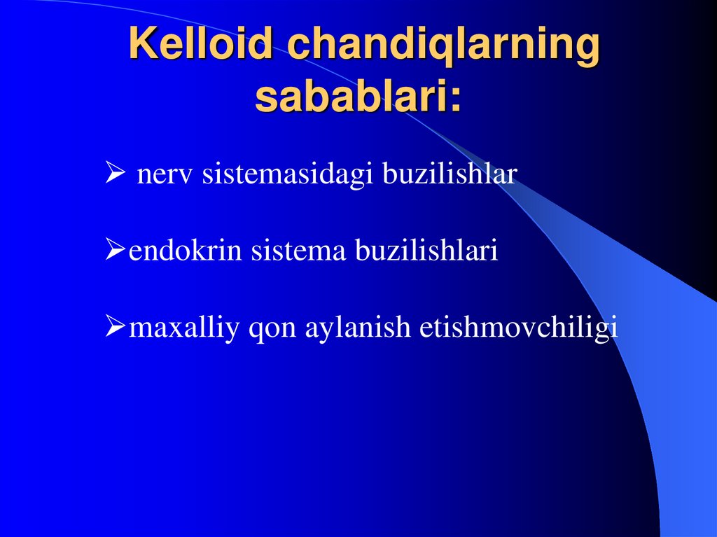 31. Kelloid chandiqlarning sabablari: