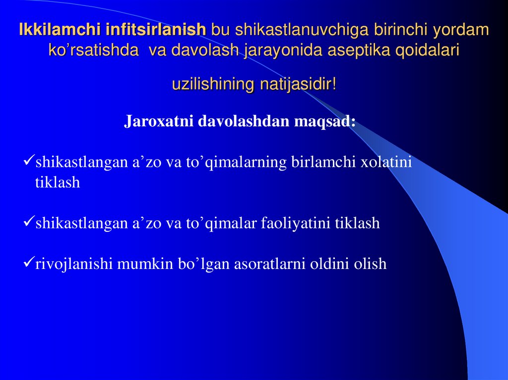 uzilishining natijasidir!Jaroxatni davolashdan maqsad:
