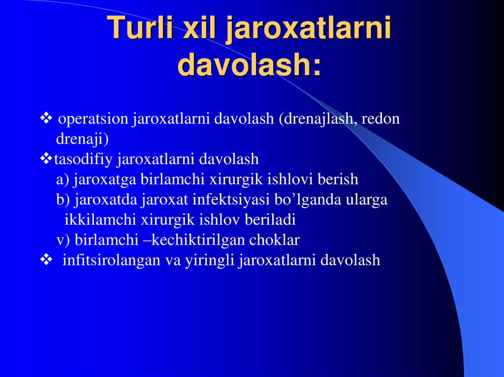 operatsion jaroxatlarni davolash (drenajlash, redondrenaji)