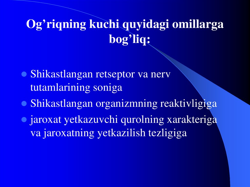 Og’riqning kuchi quyidagi omillargabog’liq: