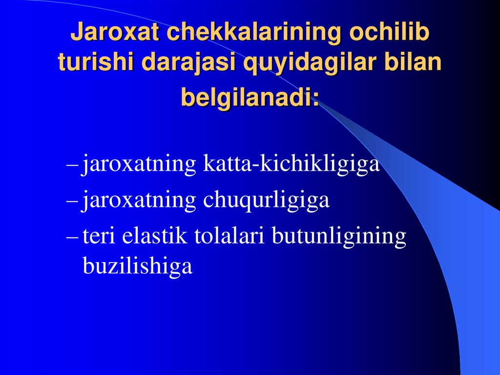 – jaroxatning katta-kichikligiga– jaroxatning chuqurligiga