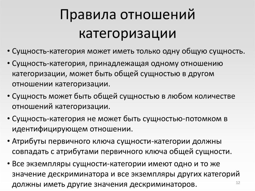 1112. Правила отношений категоризации