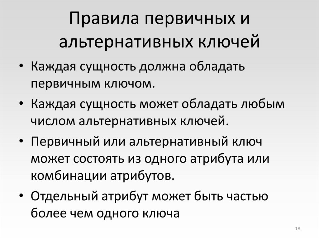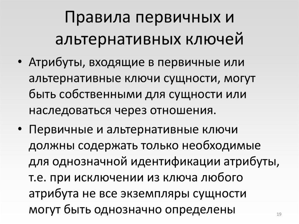 19. Правила первичных и альтернативных ключей