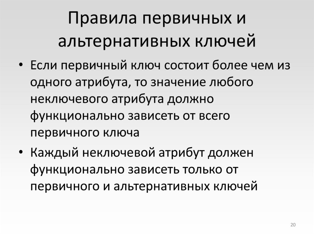 20. Правила первичных и альтернативных ключей