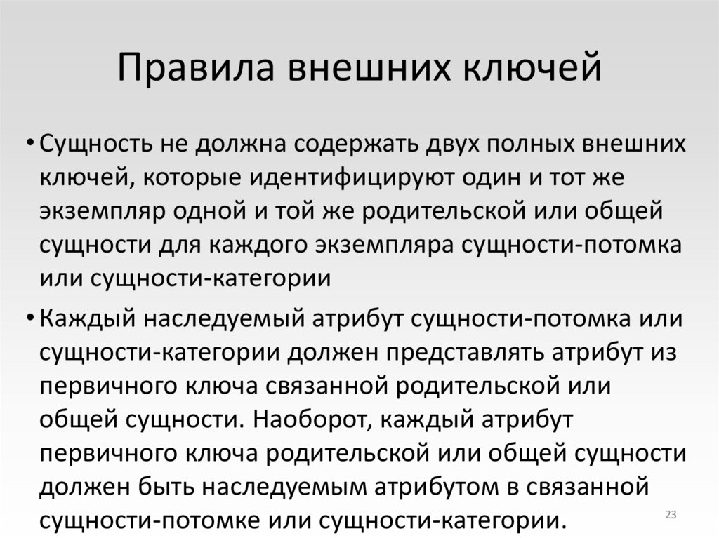 23. Правила внешних ключей