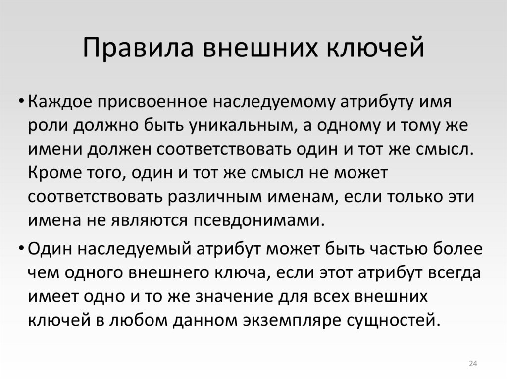 24. Правила внешних ключей