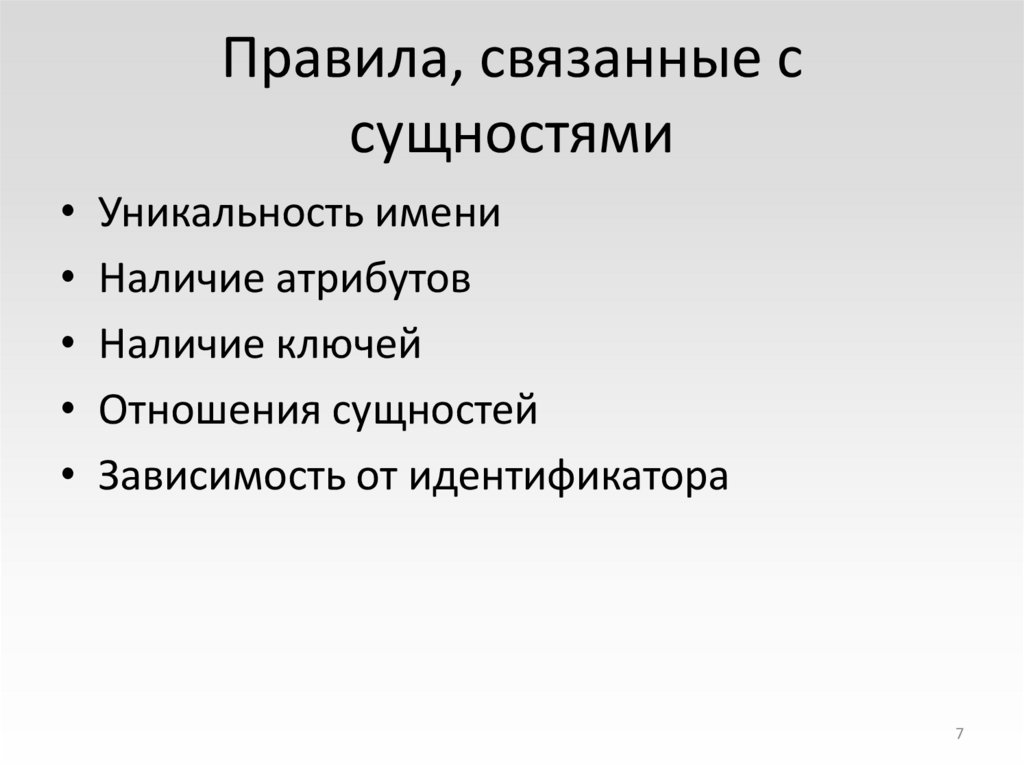67. Правила, связанные с сущностями