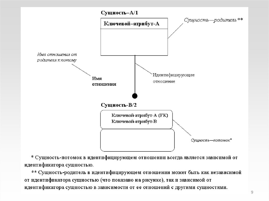 • В идентифицирующем отношении сущность-потомок