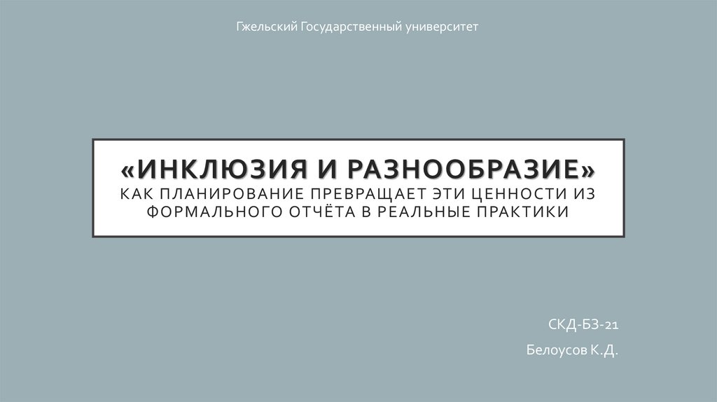 Гжельский Государственный университет«ИНКЛЮЗИЯ И РАЗНООБРАЗИЕ»