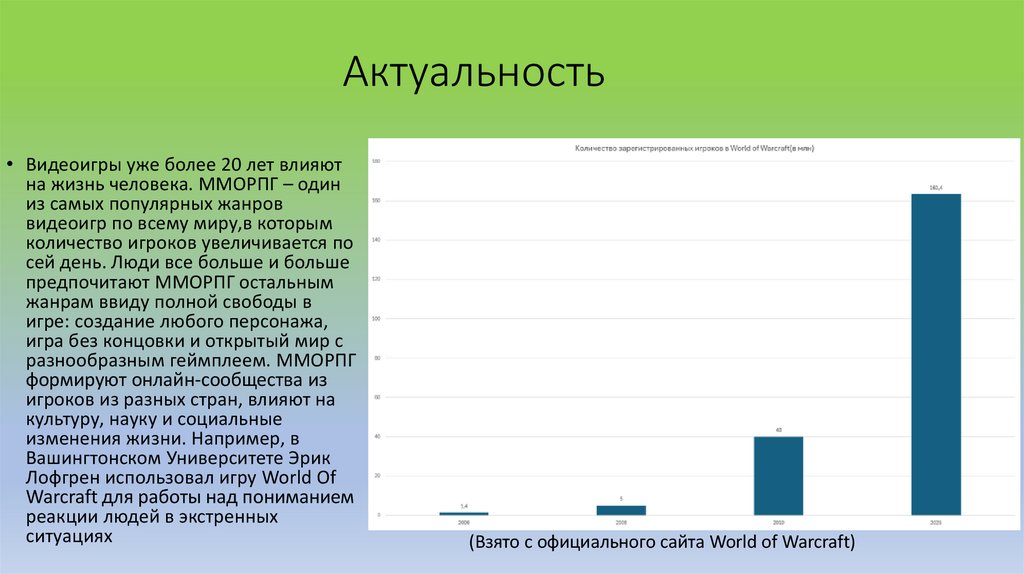 • Видеоигры уже более 20 лет влияютна жизнь человека. ММОРПГ – один