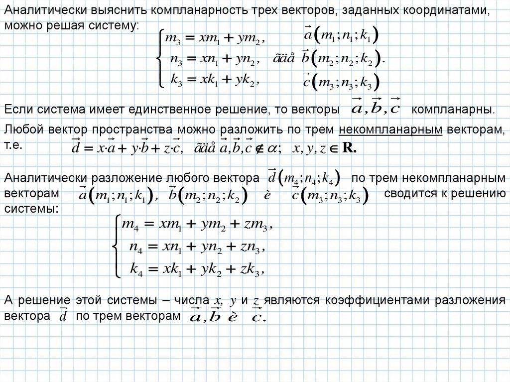 эти векторы являются некомпланарными, то любой вектор пространства можно