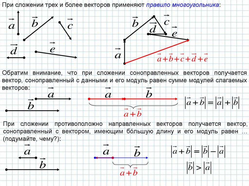 вектор, соноправленный с данными и его модуль равен сумме модулей слагаемых
