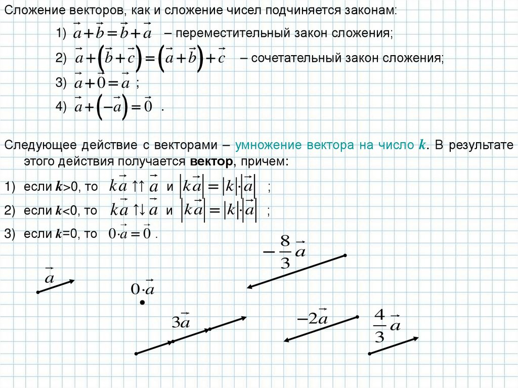 Следующее действие с векторами – умножение вектора на число k. В результате