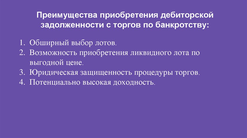 Преимущества приобретения дебиторскойзадолженности с торгов по банкротству: