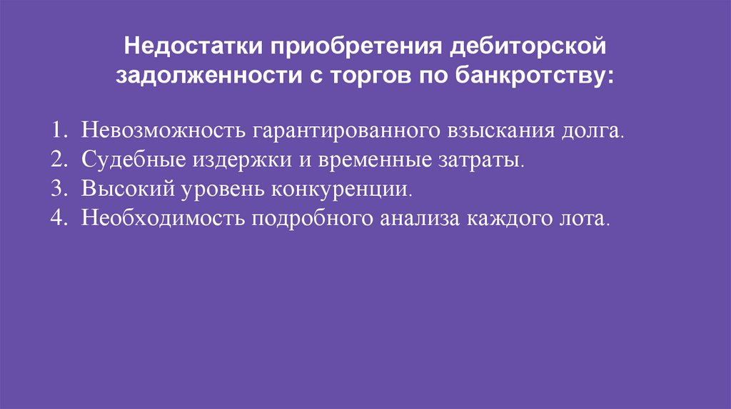 Недостатки приобретения дебиторскойзадолженности с торгов по банкротству: