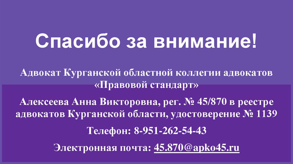 Спасибо за внимание!Адвокат Курганской областной коллегии адвокатов