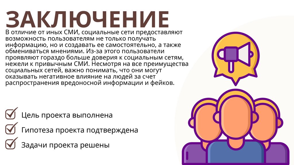 ЗАКЛЮЧЕНИЕВ отличие от иных СМИ, социальные сети предоставляют