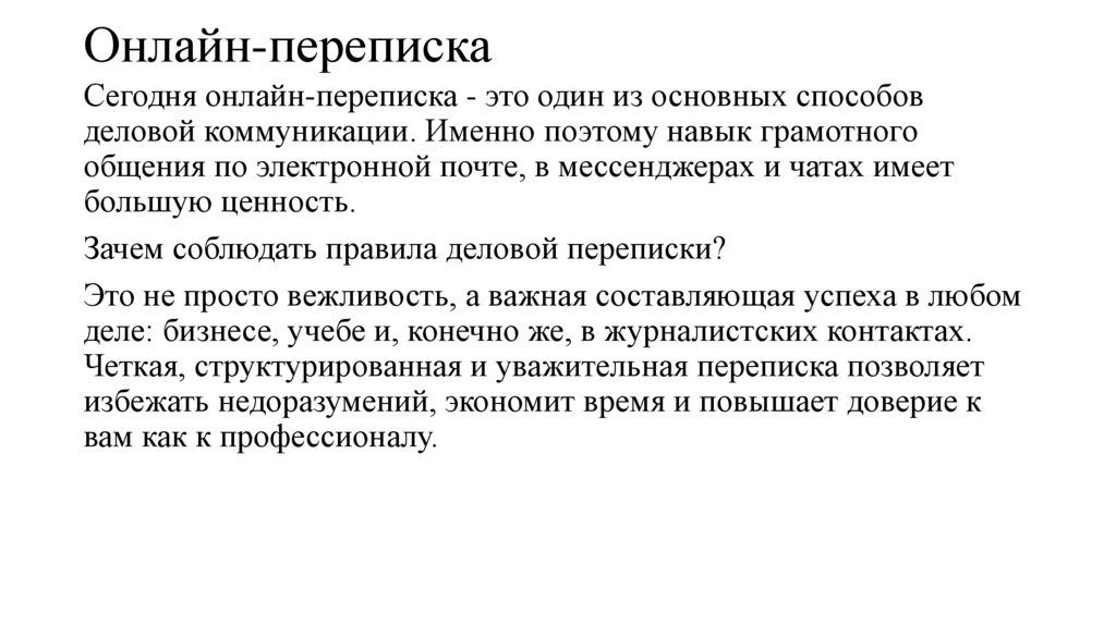 Сегодня онлайн-переписка - это один из основных способовделовой коммуникации. Именно поэтому навык грамотного